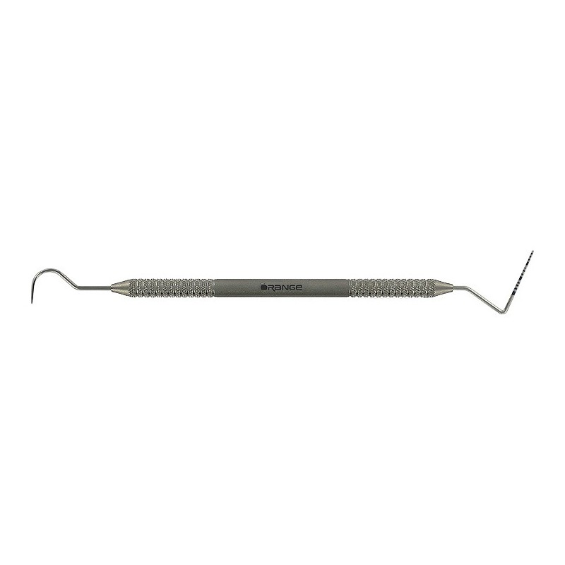 Double-ended instrument with explorer 23 on one end and probe CP-12 with with 3-6-9-12 marking.on the other. Excellent for dental examinations and charting.